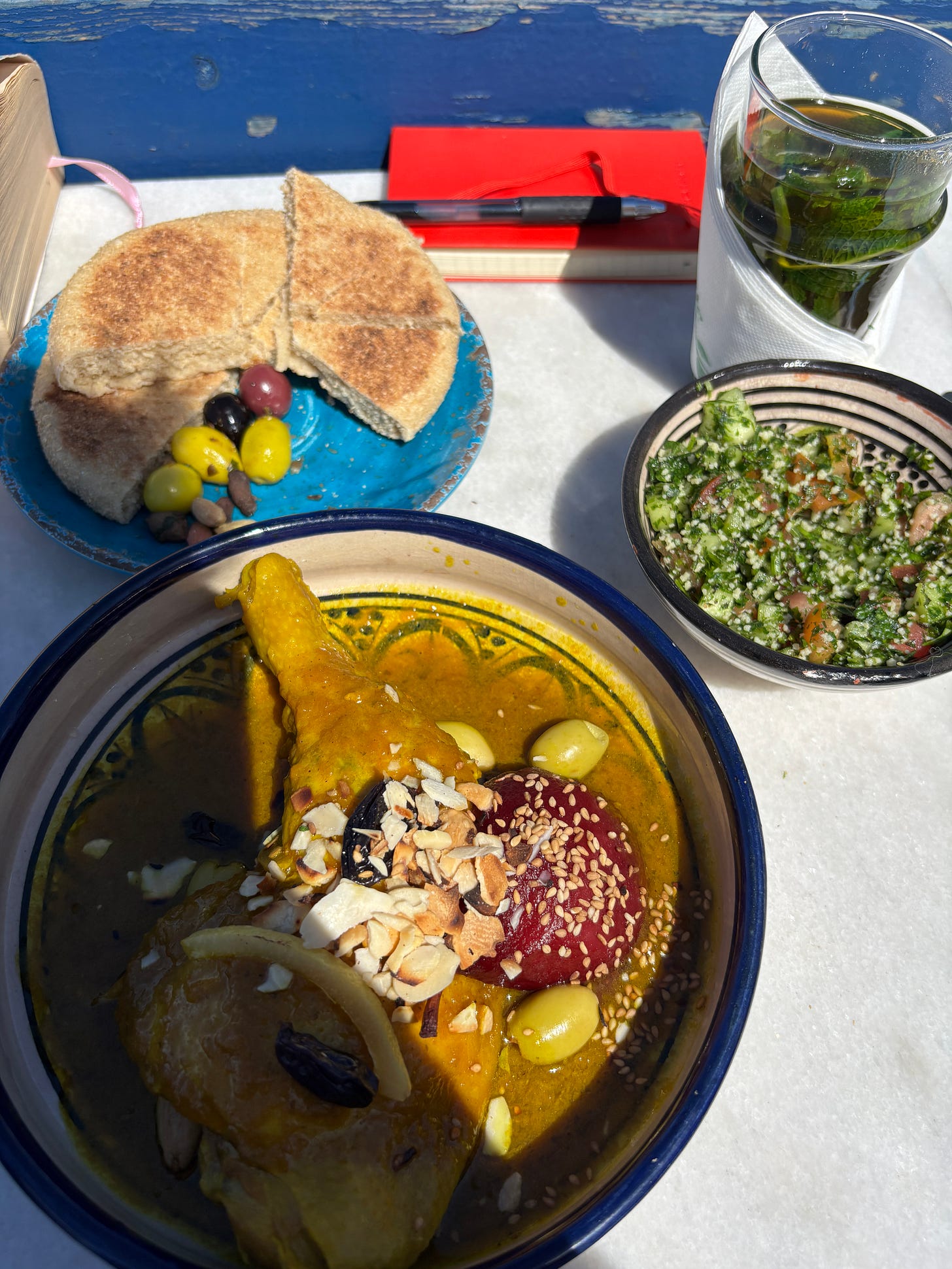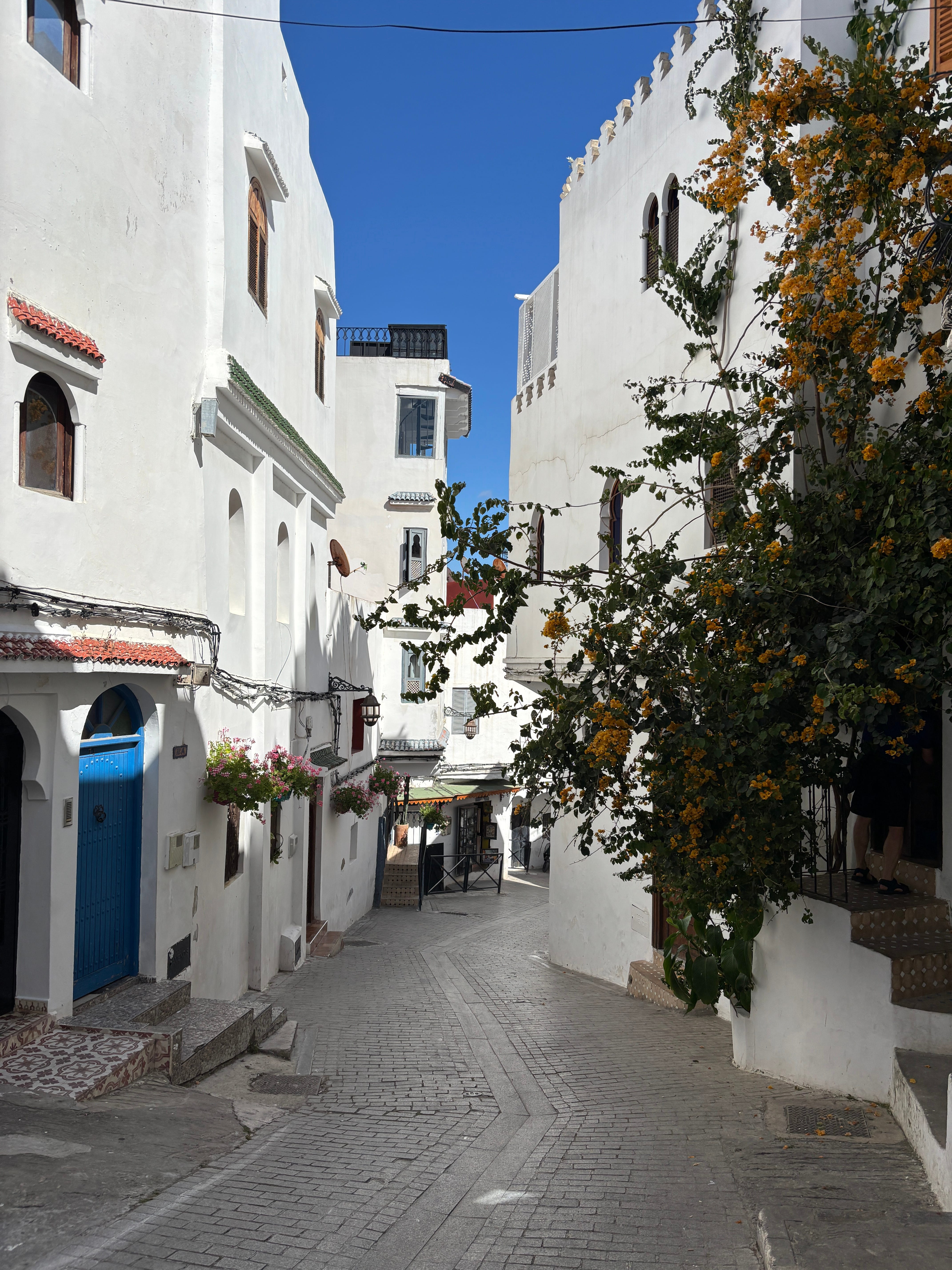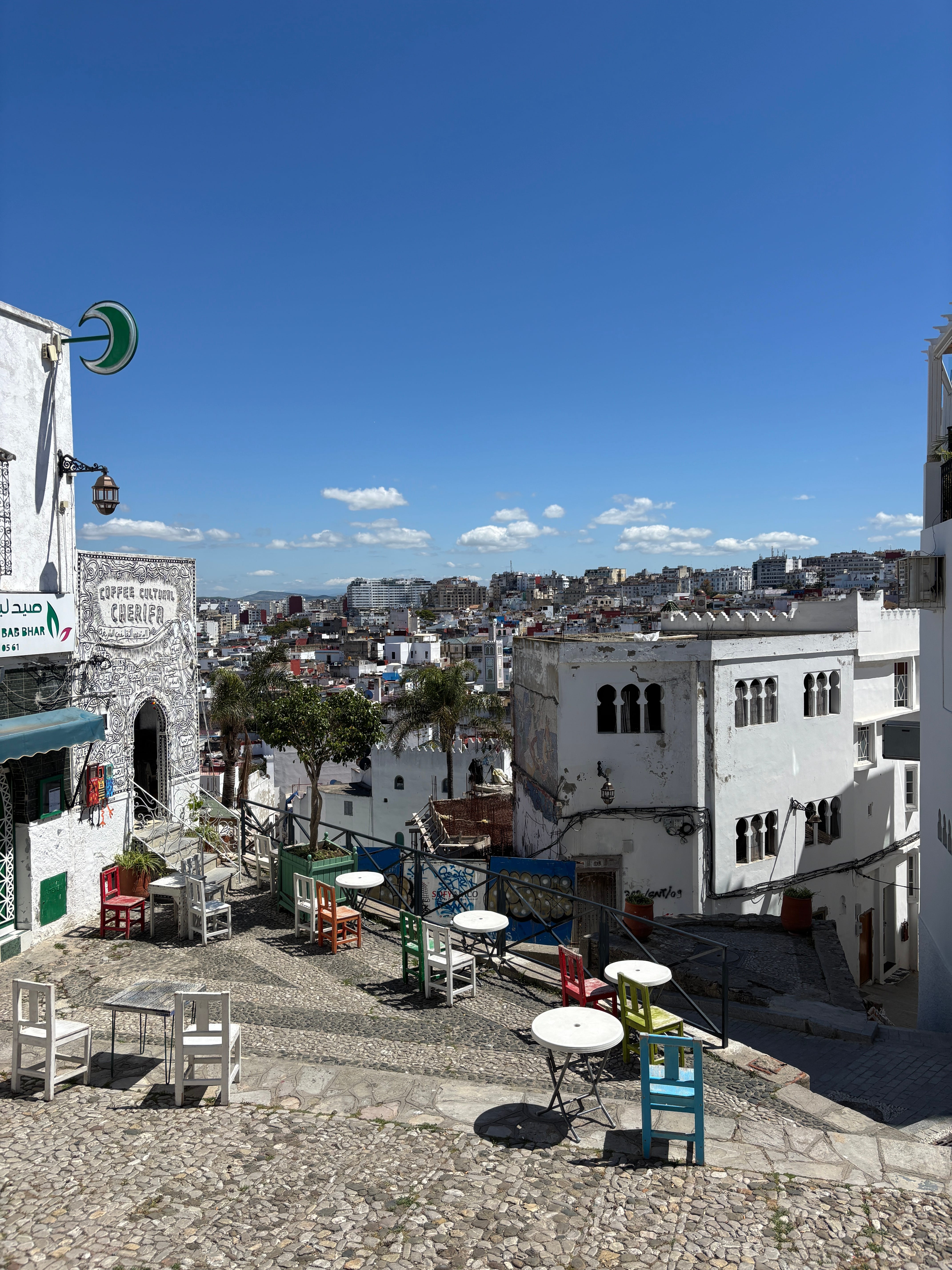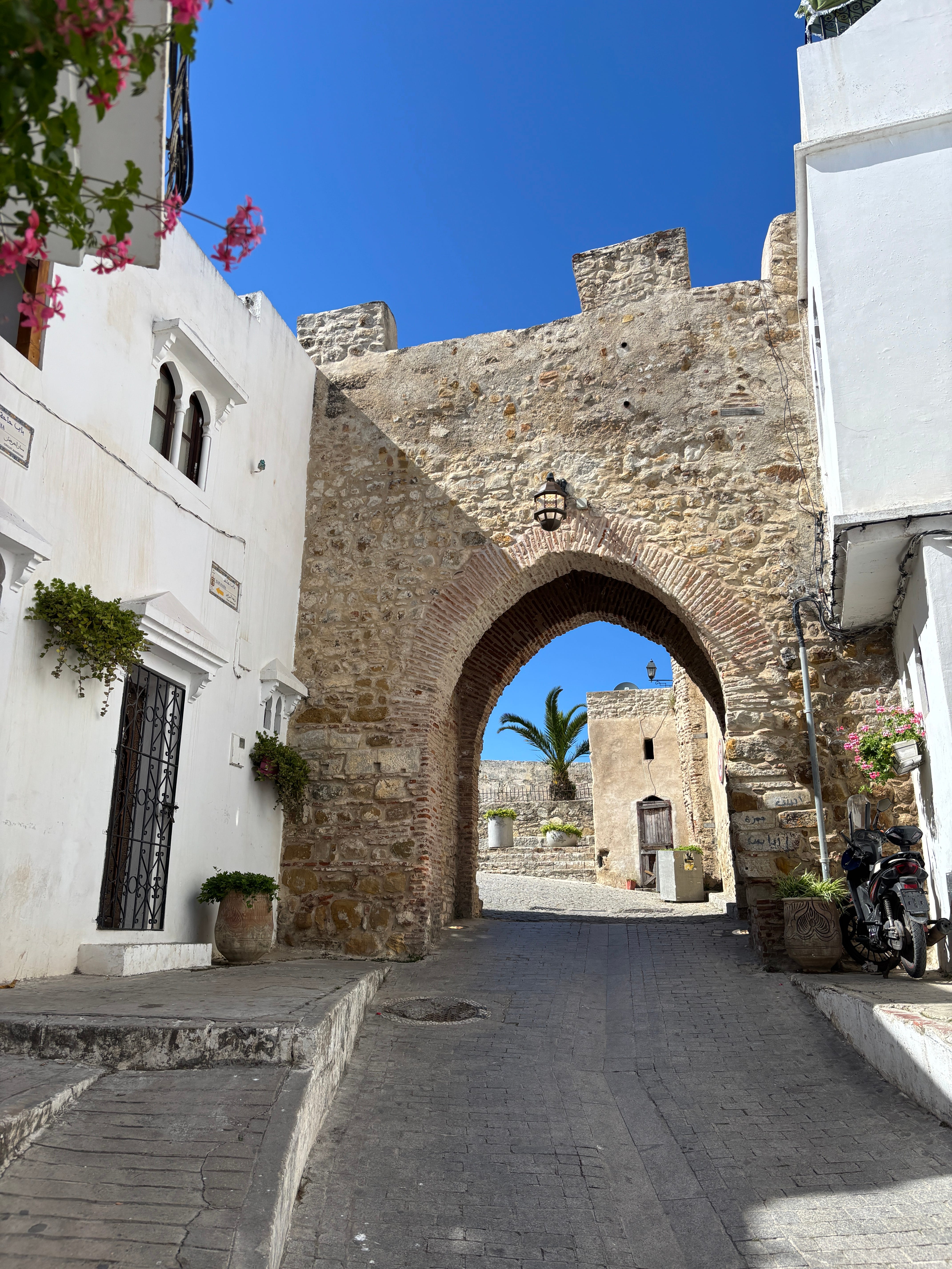 I climbed the long staircase to the medina, the walled ancient part of the city. In the grass by the entrance lay a drunken man snoring away. To the left was a pair of young men in construction vests, drinking coffee and eating pastries. My stomach grumbled.