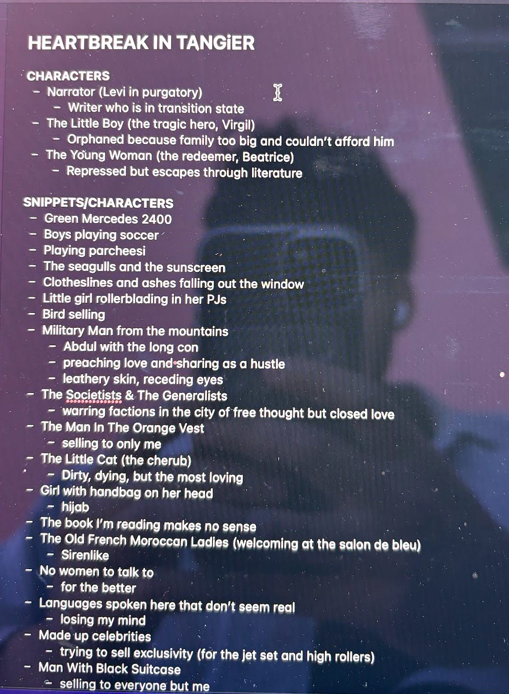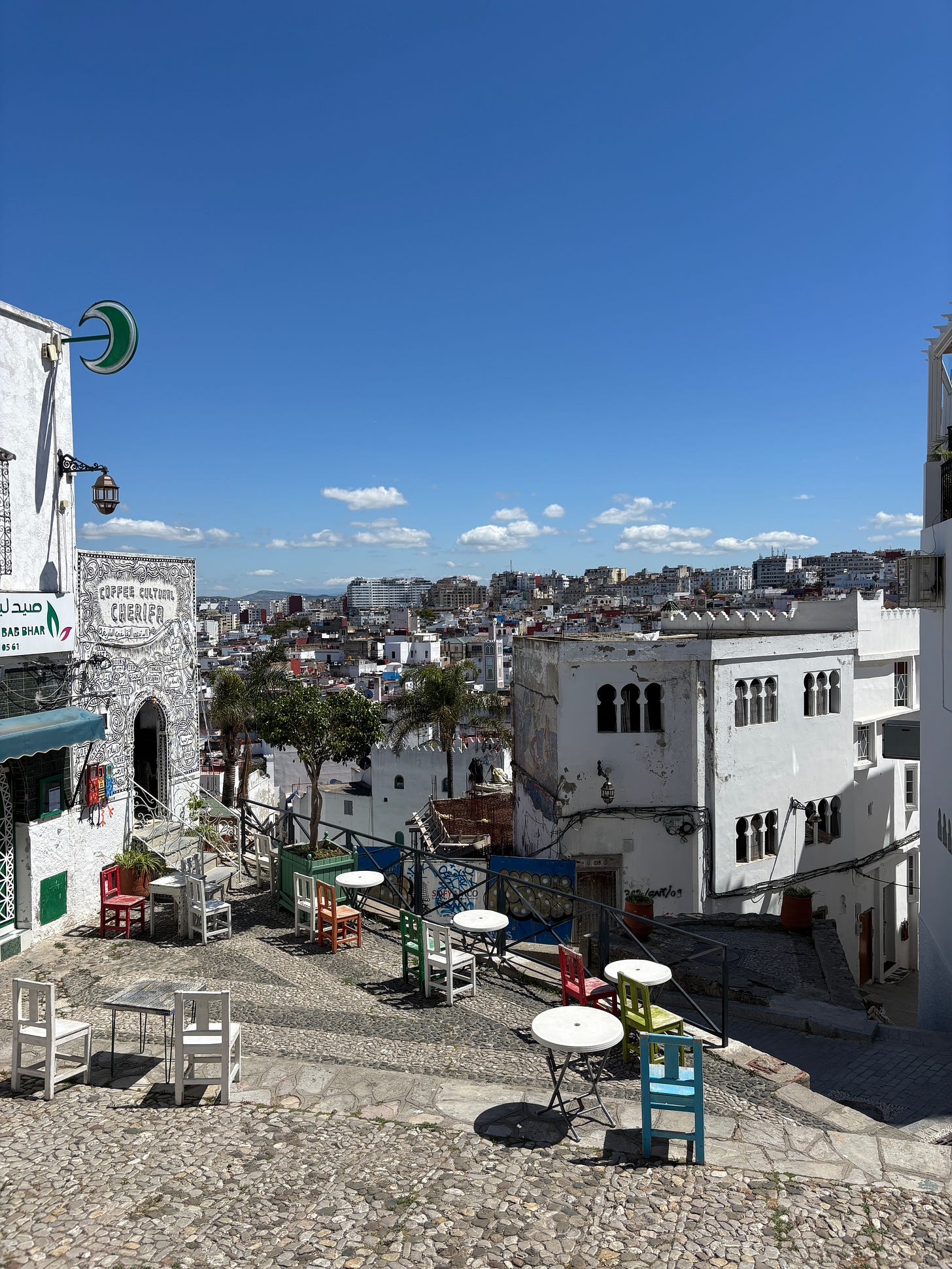 “No. You Americans think you know everything. Listen to a local. The Societists. And the Generalists. See Tangier used to be a free place, one of the freest in the world. That’s because it had no real government. It was run by five countries at once which means it was run by no one. Long before me and you were born. Your people and from everywhere used to come here to do whatever they pleased. But then, there was clearness. One government, the Moroccan government. And they wanted to close the freeness. Control the freeness.”