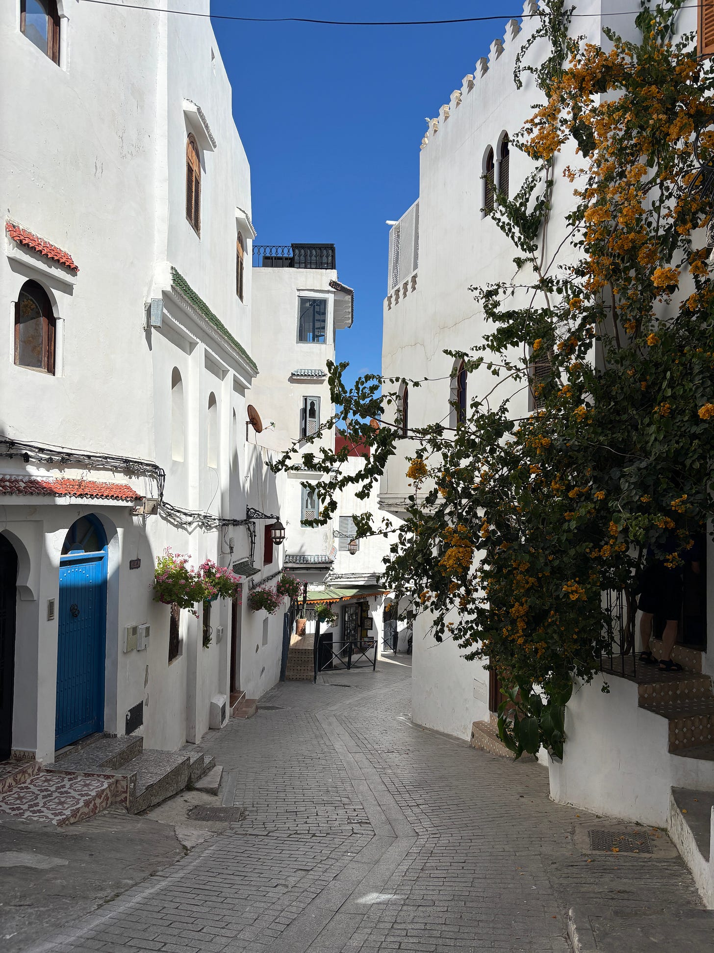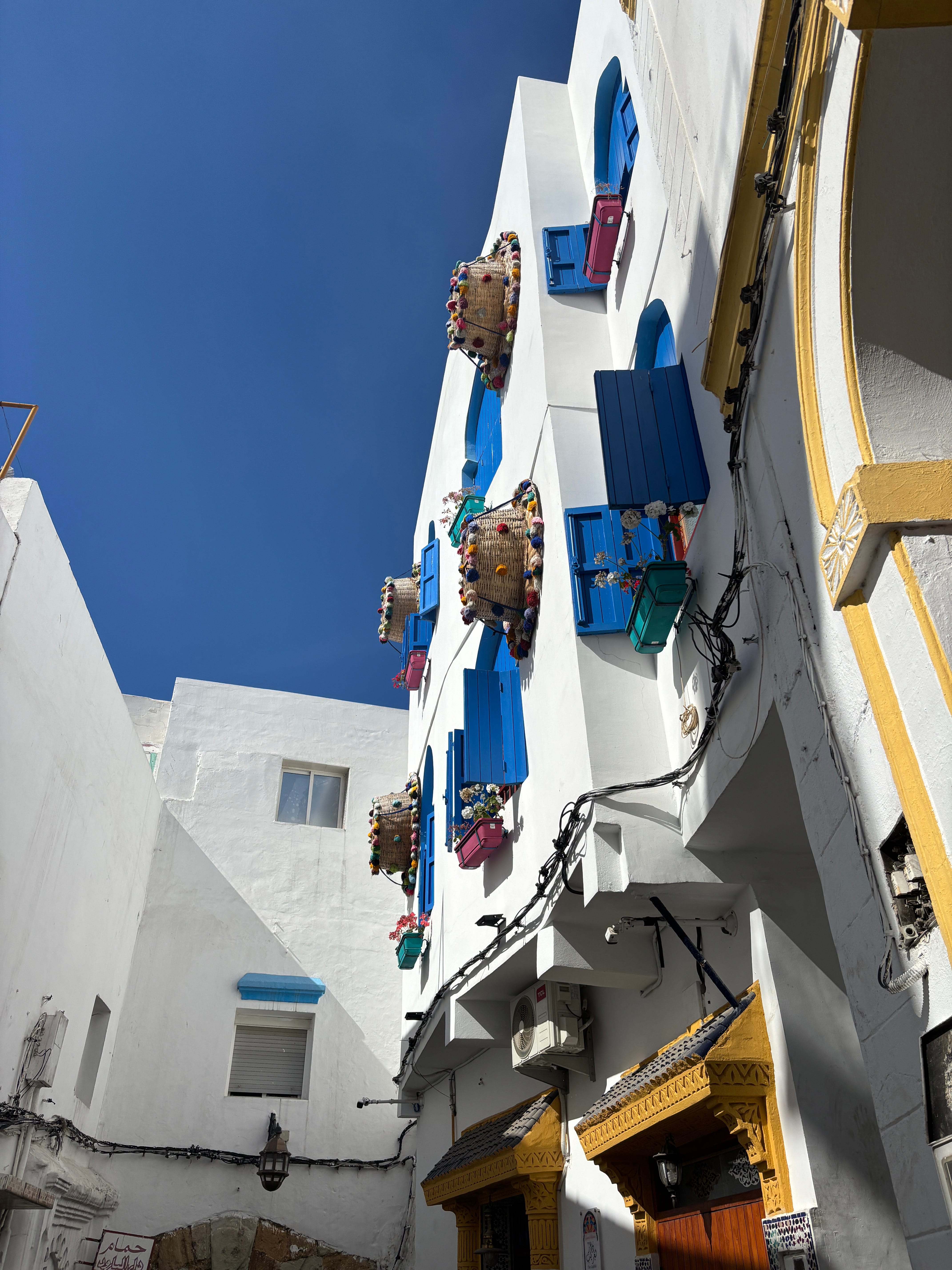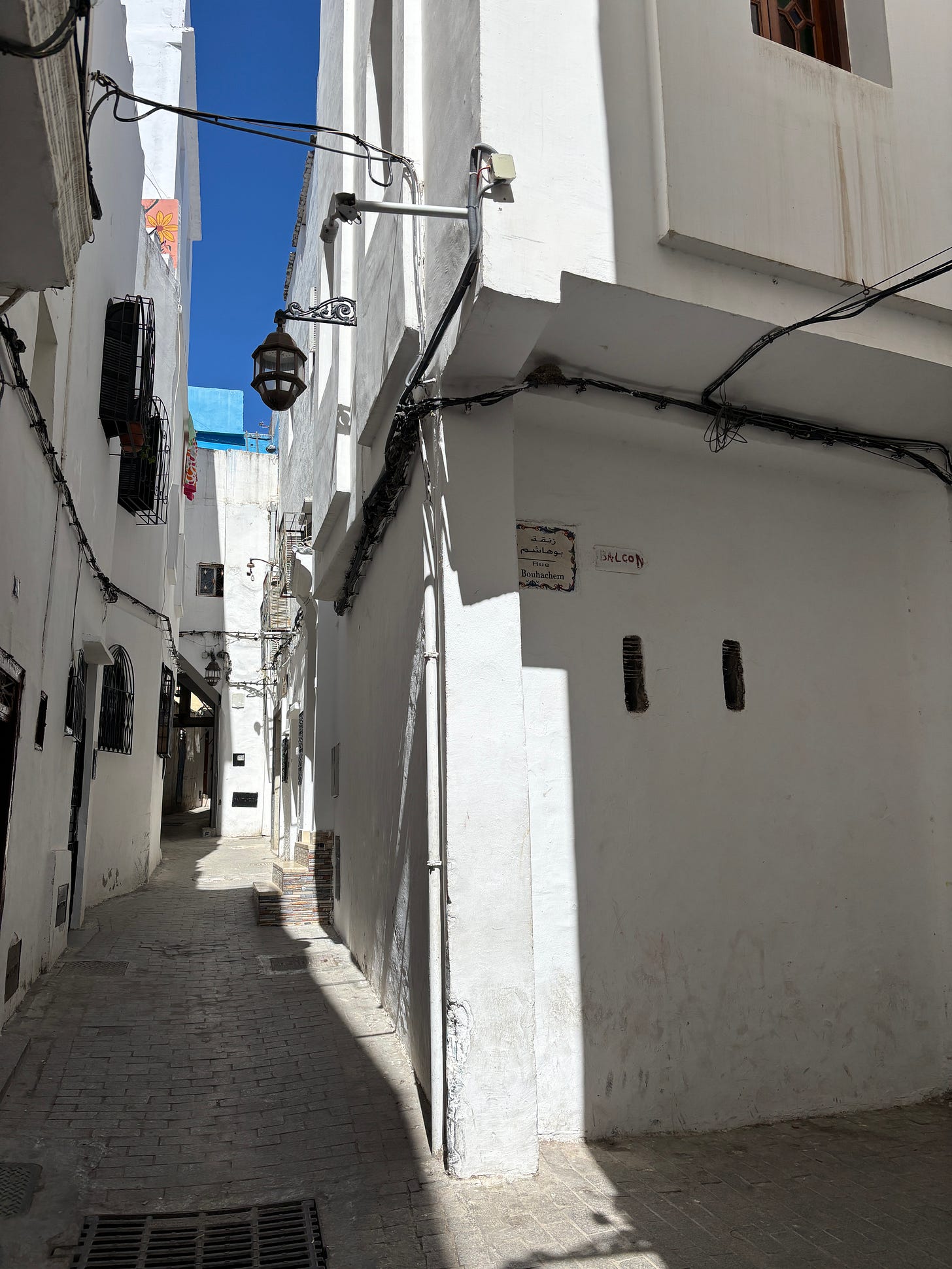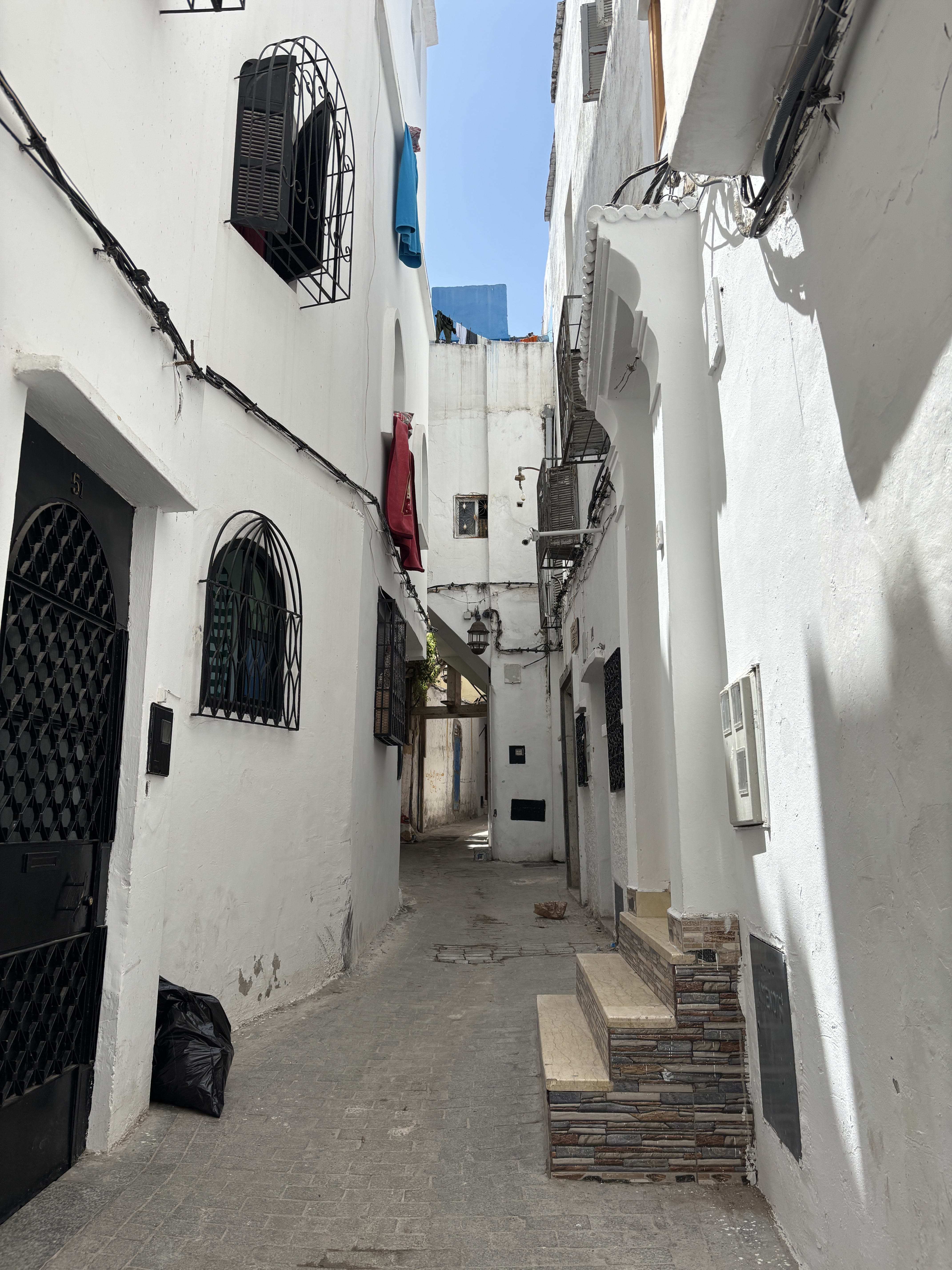 The medina was a narrow labyrinth , with clotheslines crossing everywhere overhead. The acoustics were disorienting—voices echoed around corners and it felt like everyone was closing in or far away, but never where they actually were. The Young Man would greet people often, almost everyone we passed. Two women talking in a doorway, an old man smoking out of the window, a group of young men headed to school. They all smiled and greeted him warmly, and he would salute them back, say a few words in Arabic and make them all laugh.