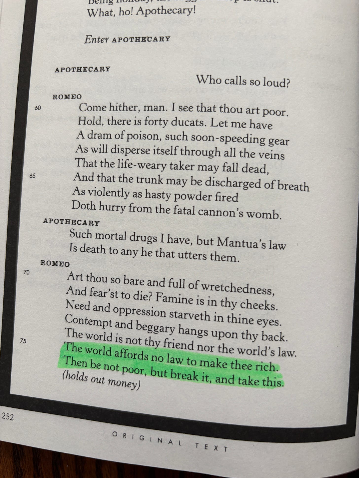 I’ve been toying with my novel in the dramatic form. So of course, I had to study the GOAT. This play is the genesis of the modern romantic comedy. It is the most accessible Shakespeare since most of it is in prose. It’s simple, it’s fun…it’s deceptively well executed.