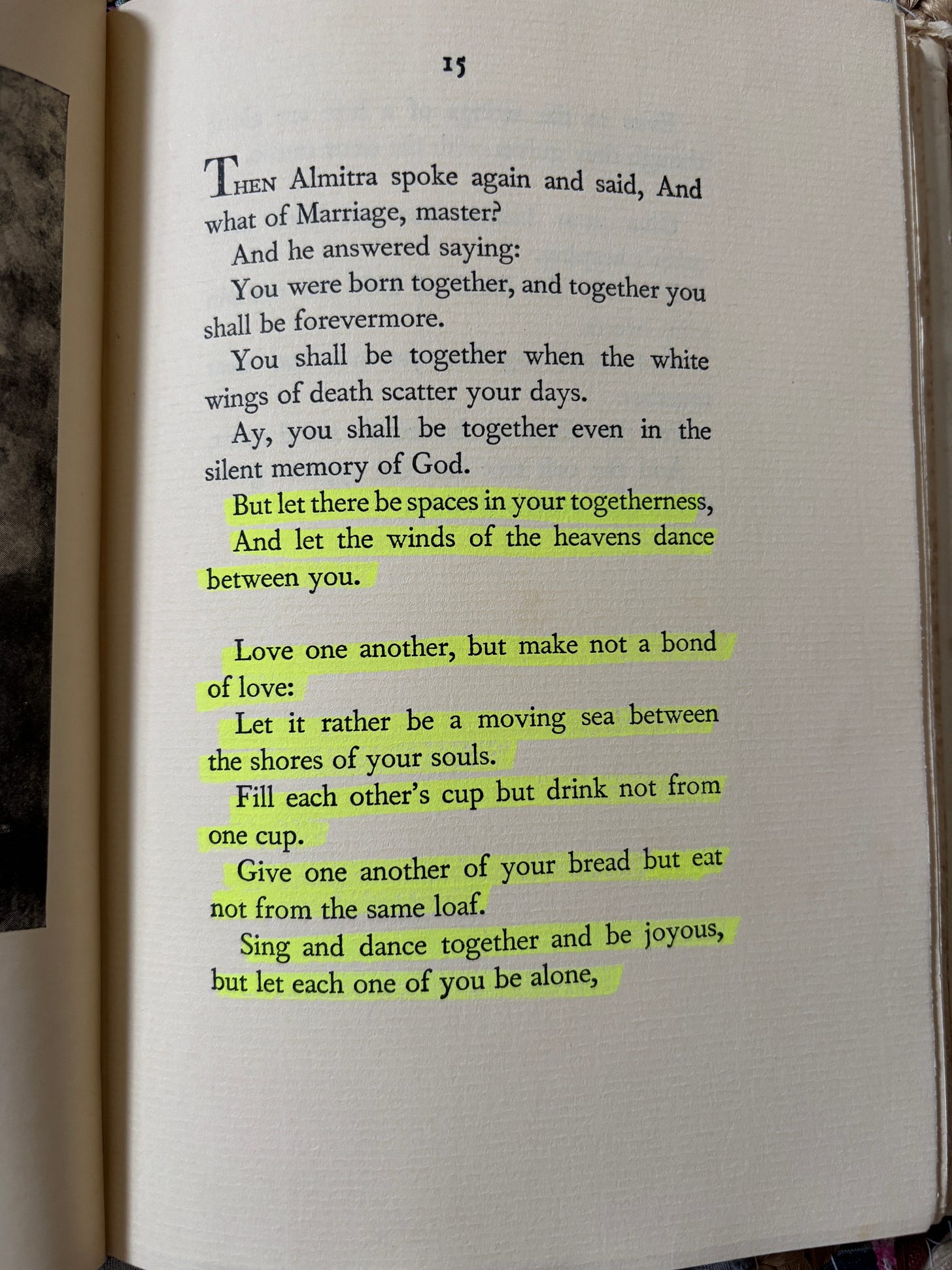 A poetic meditation on the pillars of a spiritually fulfilling life. It takes the form of a final dialogue between a prophet and the townspeople seeking his last wisdom. A simple book that echoes with a powerful moral pulse.