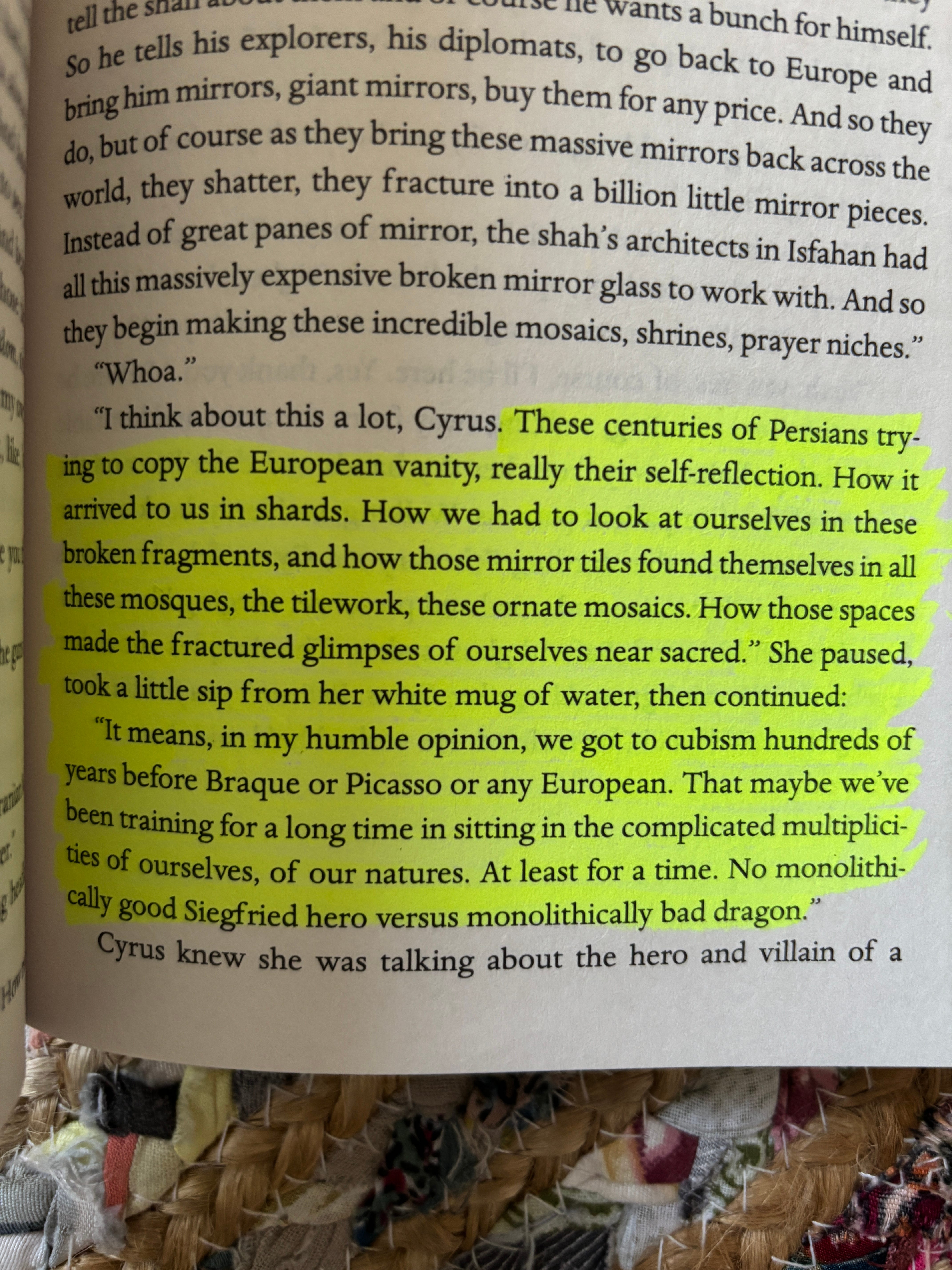 A lyrical book about a newly sober young writer raised by a single father in the Midwest, grappling with the existential calling he inherited from his Persian roots. It has a hallucinatory feel—the poeticism, humor and grief blending into an unforgettable tale. Akbar manages to craft one of the most impressive plot twists I’ve ever experienced.