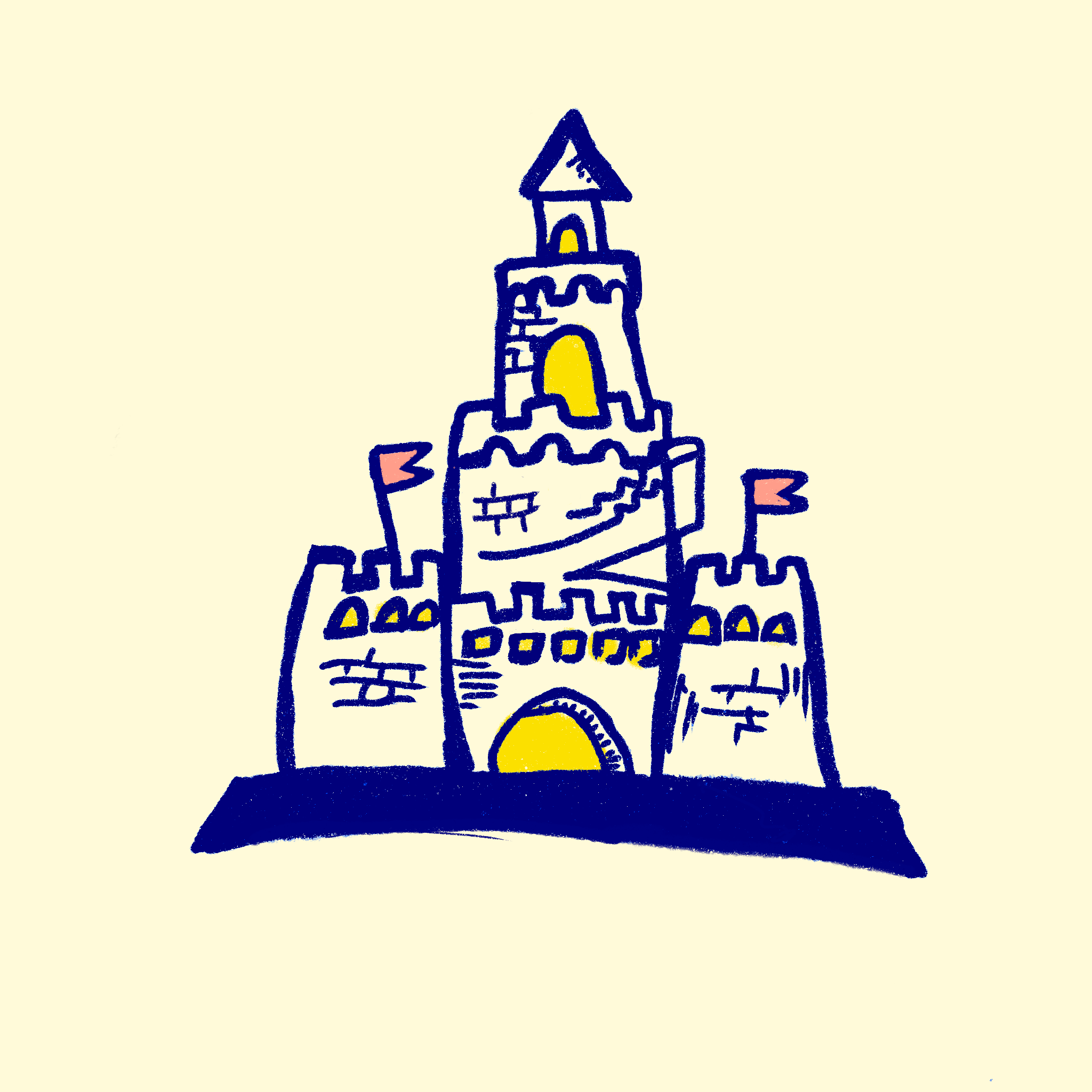 The girl added a shell she had in her pocket to the entryway of the castle.